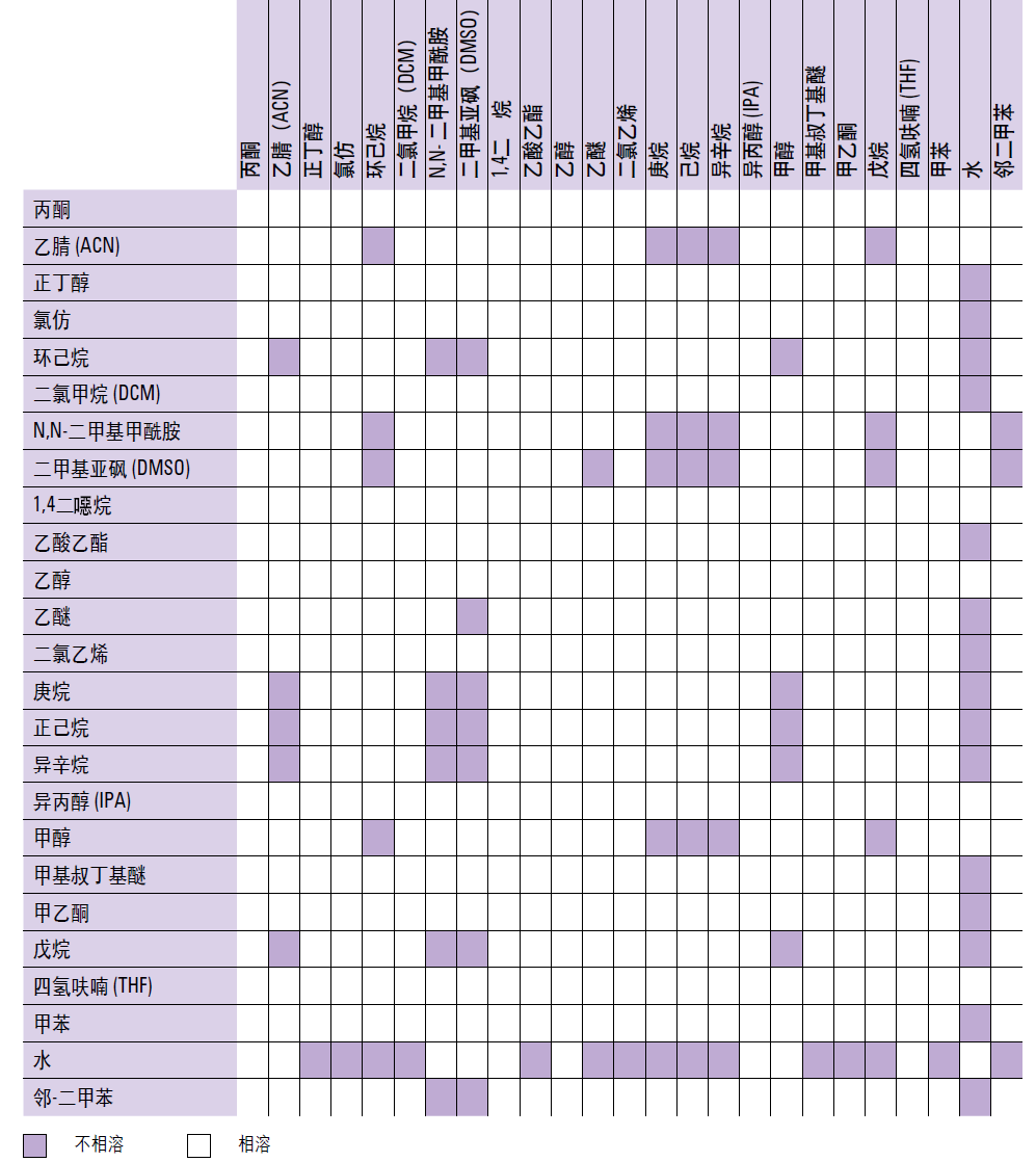 反相色谱柱由工厂测试后是保存在乙腈/水中的。新柱应先使用10-20倍柱体积的甲醇或乙腈冲洗色谱柱。请一定确保您分析样品所使用的流动相和乙腈/水互溶。每天用足够的时间以流动相来平衡色谱柱,您就会在处理问题方面获得最大的"补偿",而且您的色谱柱的寿命也会变得更长!