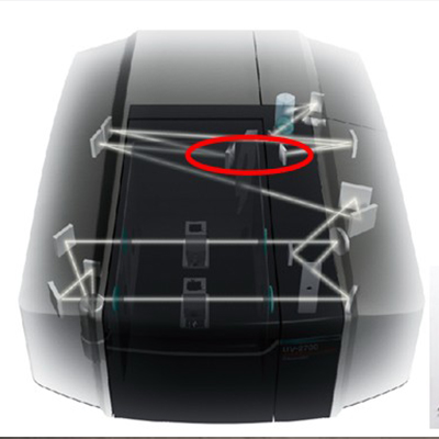 ●使用岛津技术Lo-Ray-Ligh衍射光栅使UV-2700具有稳定精度。在衍射光栅生产过程中,制造方法应用到岛津全息光栅技术上,通过稳定蚀刻工艺,在稳定的同时,成功生产出低杂散光的衍射光栅。使用配备Lo-Ray-Ligh衍射光栅的优光学系统,令UV-2700达到了低杂散光水平。